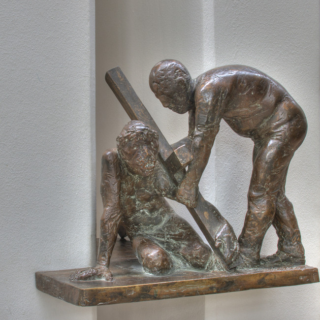 Unter dem Leitgedanken „Seht den Menschen“ wurden von Prof. Waldemar Otto acht Stationen eines Kreuzwegs gestaltet. Diese haben ihren Platz zwischen den Säulen in der Emmauskirche gefunden. Der Künstler selbst sieht das Kreuz in der Welt meist versteckt in den „Zwischenräumen“. Beim Betrachten dieser Kreuzwegstationen hat man immer auch einen schmalen Durchblick zwischen den Säulen auf das farbige Osterbild in der Apsis.